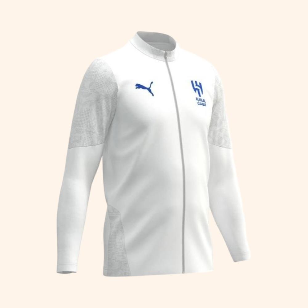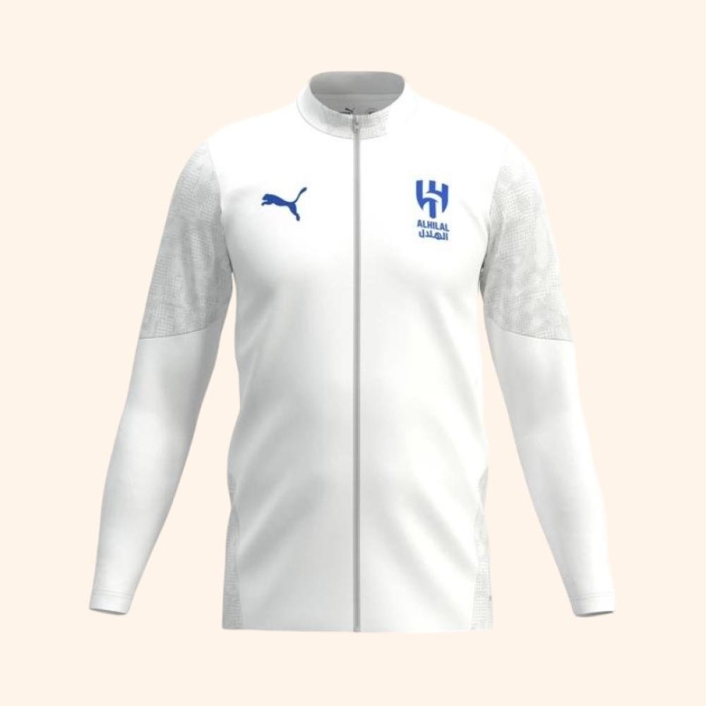 جاكت ابيض تدريبات الهلال تصميم أنيق وناعم يعكس انتماءك الرياضي بذوق راقٍ وبسيط.