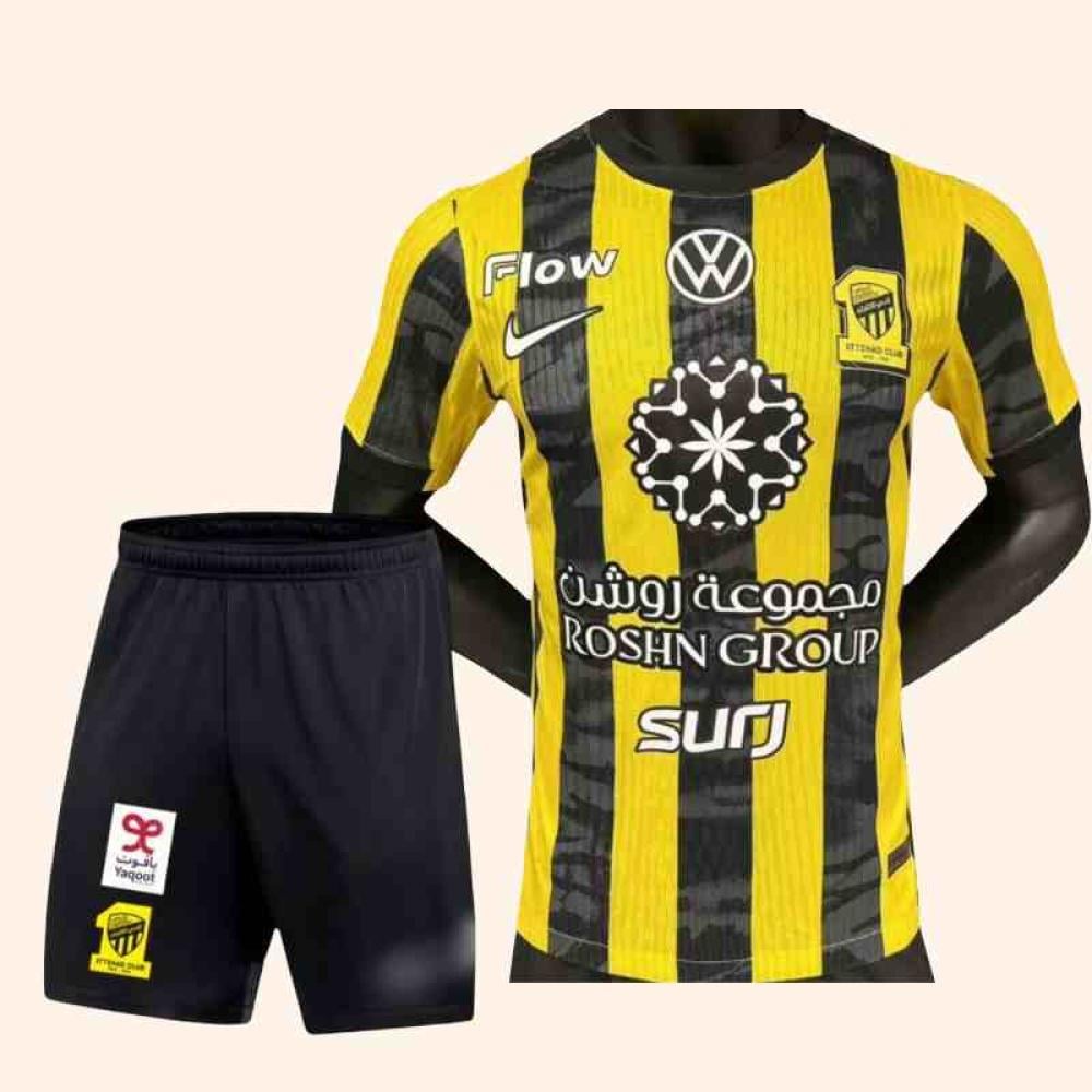 طقم الاتحاد الاساسي 2026 – تيشيرت مخطط اصفر واسود + شورت | نسخة اللاعبين الرسمية