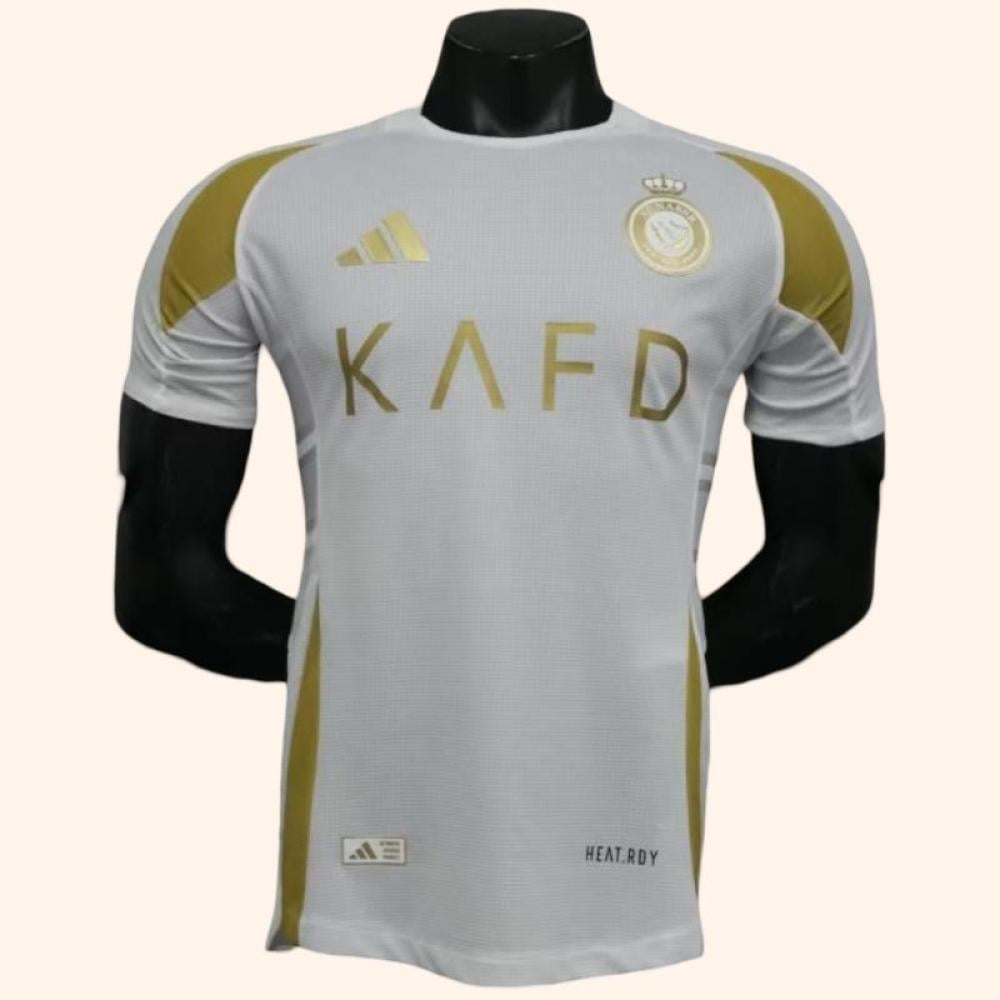 يتميز بخامة HEAT.RDY عالية الجودة لتهوية مثالية، مع شعار نادي النصر وشعار KAFD مطبوعين بدقة على الصدر.